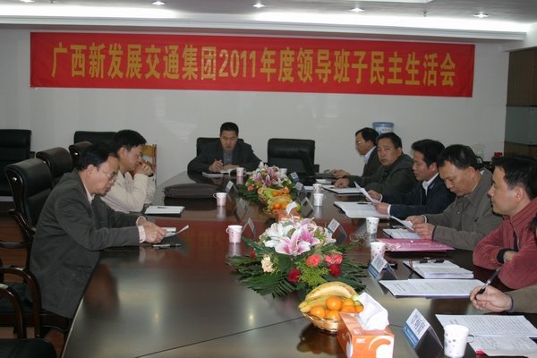 12月21日,廣西新發(fā)展交通集團有限公司黨委在南寧召開了以“堅持以人為本企業(yè)文化理念,發(fā)揚密切聯(lián)系職工群眾作風(fēng)”為主題的2011年黨政領(lǐng)導(dǎo)班子民主生活會。自治區(qū)交通運輸廳總工程師王劼耘、廳直屬機關(guān)黨委專職副書記羅華芝到會指導(dǎo)。集團公司朱堅和、李定倫、張友坐、劉明洪、鄧遠志、覃炳賢等六位領(lǐng)導(dǎo)班子成員出席會議,集團公司機關(guān)黨支部書記列席會議。