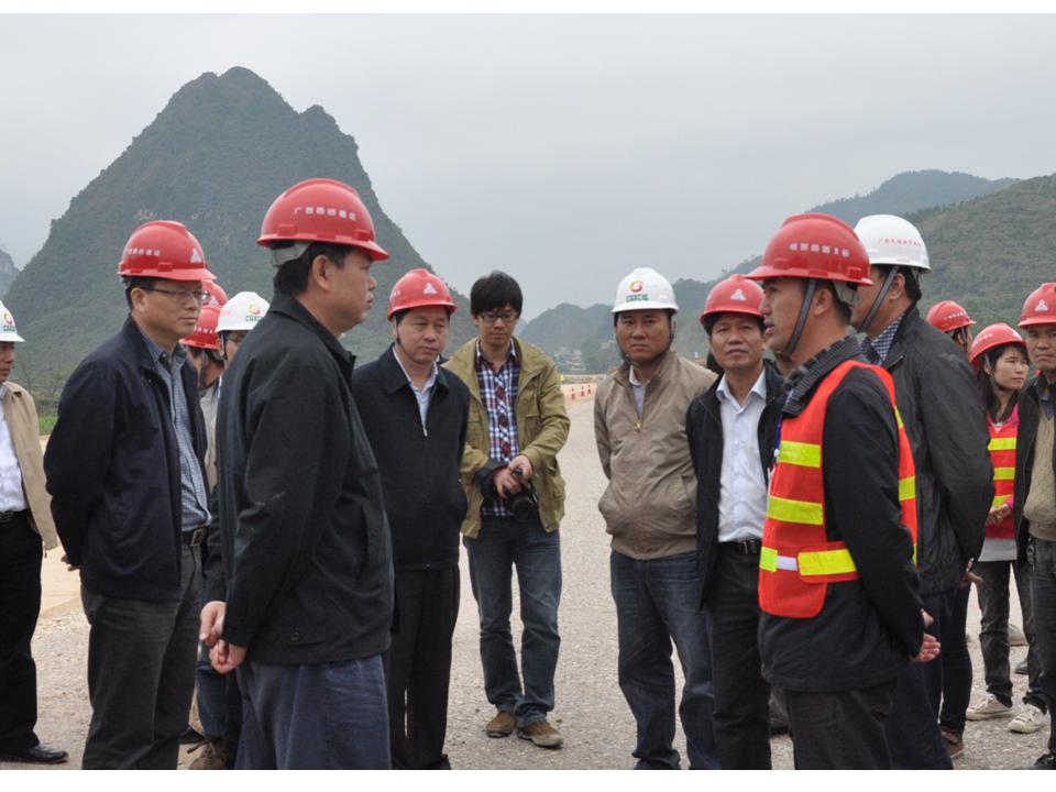 圖3:自治區(qū)交通運(yùn)輸廳副廳長梁毅(前右一)在欽崇高速公路項(xiàng)目檢查調(diào)研