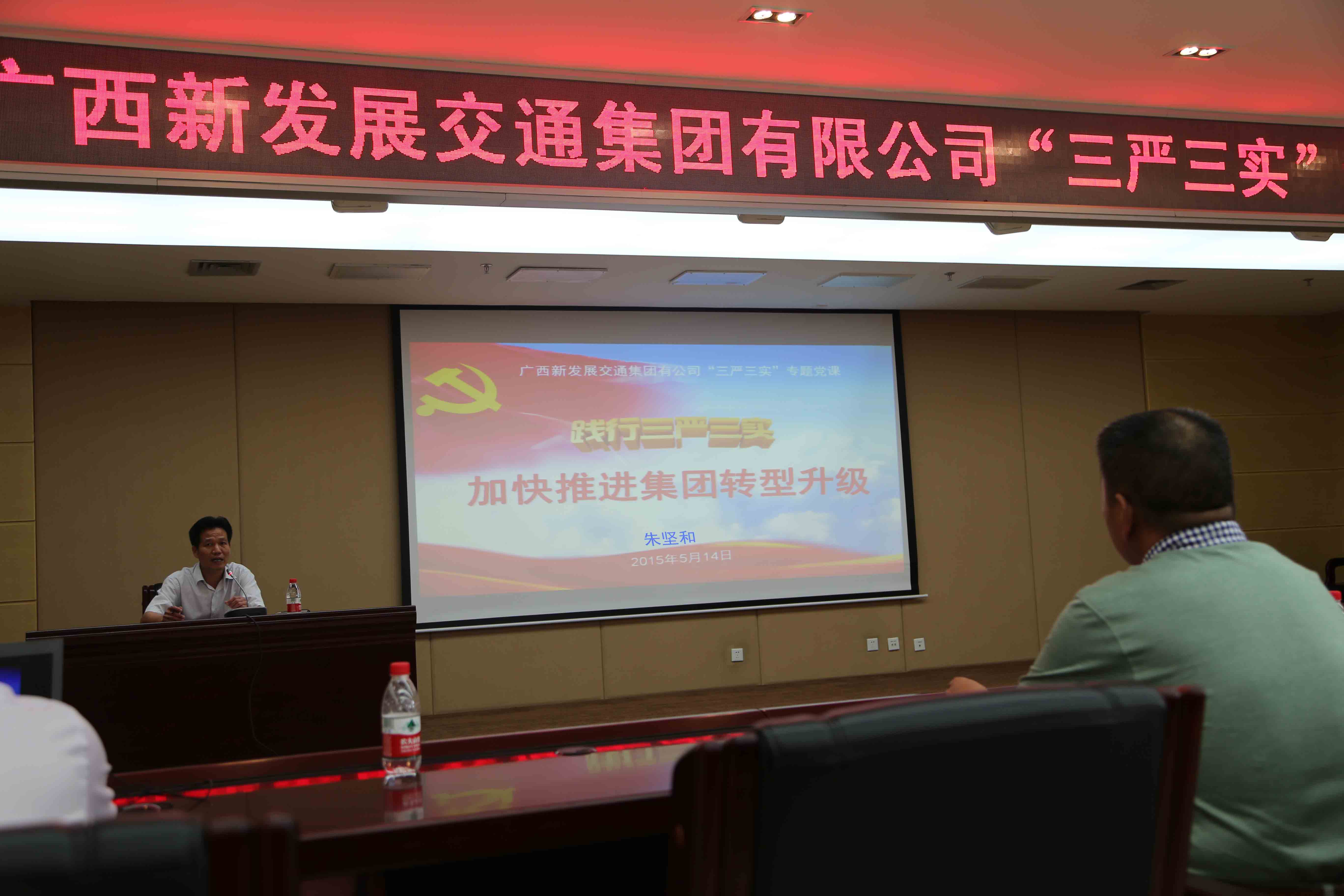 5月14日下午,集團(tuán)公司黨委書(shū)記、董事長(zhǎng)朱堅(jiān)和以《踐行“三嚴(yán)三實(shí)” 加快推進(jìn)集團(tuán)轉(zhuǎn)型升級(jí)》為題,帶頭為集團(tuán)及直屬各企業(yè)領(lǐng)導(dǎo)班子講專(zhuān)題黨課。集團(tuán)公司黨委副書(shū)記、紀(jì)委書(shū)記張友坐主持黨課。以此次黨課為標(biāo)志,集團(tuán)公司“三嚴(yán)三實(shí)”專(zhuān)題教育正式啟動(dòng)。