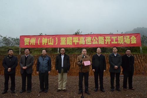 按照自治區(qū)的統(tǒng)一部署,12月29日上午10時(shí),2015年全區(qū)高速公路重大項(xiàng)目開竣工現(xiàn)場(chǎng)會(huì)第五分會(huì)場(chǎng)——賀州至巴馬高速公路(鐘山至昭平段)開工現(xiàn)場(chǎng)會(huì)在賀州市昭平縣舉行。集團(tuán)公司副董事長(zhǎng)、總經(jīng)理、黨委副書記唐咸秋,總工程師覃炳賢,賀州市副市長(zhǎng)閉海東等有關(guān)領(lǐng)導(dǎo)出席會(huì)議;賀州市、桂林市、昭平縣、鐘山縣、平樂縣等項(xiàng)目沿線各級(jí)政府領(lǐng)導(dǎo)和相關(guān)部門負(fù)責(zé)人以及廣西新恒通高速公路有限公司等有關(guān)單位代表約30人參加會(huì)議,共同見證項(xiàng)目開工建設(shè)。唐咸秋主持開工現(xiàn)場(chǎng)會(huì),覃炳賢介紹項(xiàng)目概況,項(xiàng)目沿線有關(guān)政府部門代表表態(tài)發(fā)言,閉海東宣布項(xiàng)目正式開工建設(shè)。