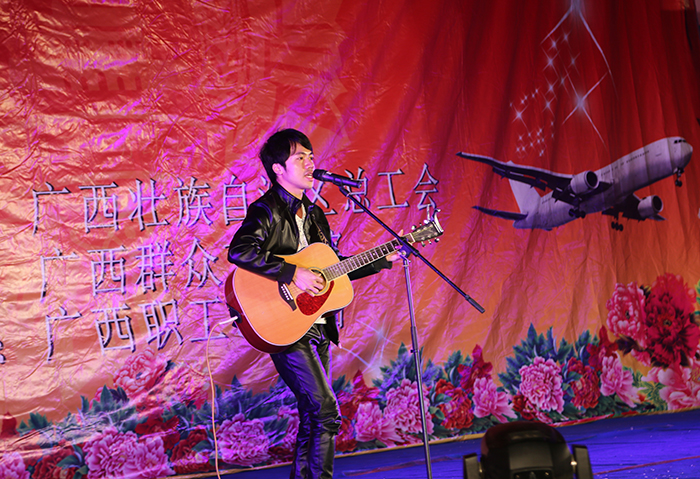 當晚,一曲《唱著山歌等你來》拉開了演出序幕……優(yōu)美的舞蹈、詼諧幽默的小品、變化莫測的魔術(shù)、精彩絕倫的雜技等節(jié)目,多種表演形式藝術(shù)地展現(xiàn)了廣大職工誠實勞動、勤奮勞動、創(chuàng)新勞動的時代風采,奏響了“勞動美”時代主旋律。工地小伙也走上舞臺,吉他彈唱《曾經(jīng)的你》展現(xiàn)了廣西新發(fā)展人樂于奉獻、克難攻堅的時代風采。整場慰問演出歷時80分鐘,贏得現(xiàn)場觀眾的陣陣掌聲、歡呼聲和喝彩聲,一次又一次把氣氛推向高潮。