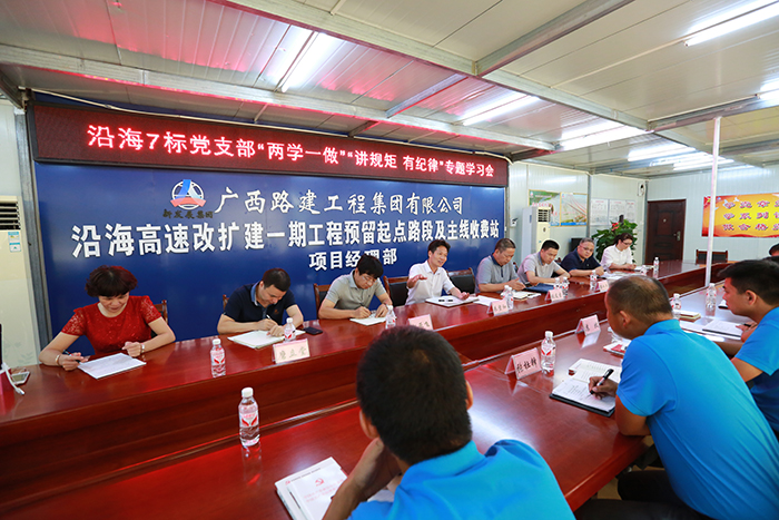 會前,朱堅和書記、張友坐副書記還到廣西路建集團沿海7標(biāo)施工現(xiàn)場,了解項目的施工進展情況,并觀看了項目的“兩學(xué)一做”學(xué)習(xí)教育宣傳欄。