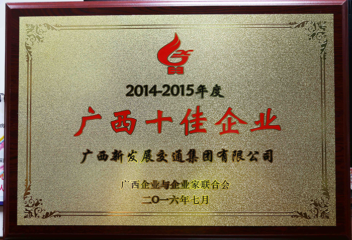 集團公司獲得“2014-2015年度廣西十佳企業(yè)”榮譽,集團公司董事長、黨委書記朱堅和榮獲“2014-2015年度廣西優(yōu)秀企業(yè)家”稱號!