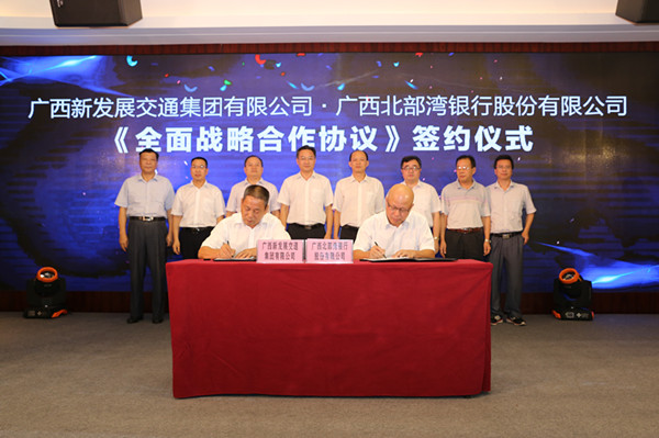 圖一:集團(tuán)公司黨委副書記張友坐與廣西北部灣銀行副行長陳捷