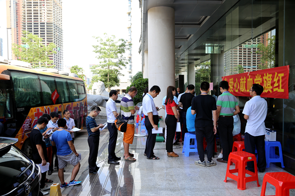 集團(tuán)公司總部及下屬的交通設(shè)計院、路橋集團(tuán)、廣路集團(tuán)、路建集團(tuán)等15家單位的黨員群眾積極響應(yīng)公司黨委的號召,踴躍參與無償獻(xiàn)血活動。上午8:30,南寧市中心血站派出的采血車剛剛駛?cè)虢煌ㄔO(shè)計大廈,早早守候在大院的黨員群眾自覺在登記處排好了隊,依次排隊獻(xiàn)血。獻(xiàn)血活動持續(xù)到下午18:00結(jié)束,共有175人參與無償獻(xiàn)血,捐獻(xiàn)熱血55900毫升。