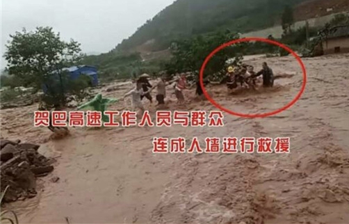 7月3日,廣西桂北地區(qū)連日遭受暴雨侵襲,鐘山至昭平高速公路項目多個場站被沖毀,駐地被洪水圍困,項目部立即啟動應(yīng)急救援預(yù)案,積極開展自救工作。在得知附近的源頭鎮(zhèn)群眾被洪水圍困后,項目工區(qū)經(jīng)理鄒穎林立刻放下整理好的物資,與其他員工一起沖進洪水中拯救鄉(xiāng)民。項目部員工通過手拉手搭建起了生命通道,先后4次下水施救,最終成功轉(zhuǎn)移30多名受困群眾,其中包括5名小孩。