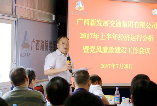 7月28日,集團公司在南寧市柳南高改快3標項目召開2017年上半年經(jīng)濟運行分析暨黨風(fēng)廉政建設(shè)工作會議。會議傳達了交通運輸部2017年上半年工作總結(jié)和下半年工作會議精神,全區(qū)縣域經(jīng)濟發(fā)展大會暨年中工作會議精神以及自治區(qū)國資委2017年上半年經(jīng)濟運行分析、安全生產(chǎn)暨“1+N監(jiān)督閉環(huán)”工作推進會議精神,對集團公司上半年經(jīng)濟運行情況和黨風(fēng)廉政建設(shè)工作情況進行了認真總結(jié)與分析,研究部署了下一階段工作任務(wù)。會議由集團公司黨委副書記、副董事長、總經(jīng)理唐咸秋主持。