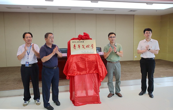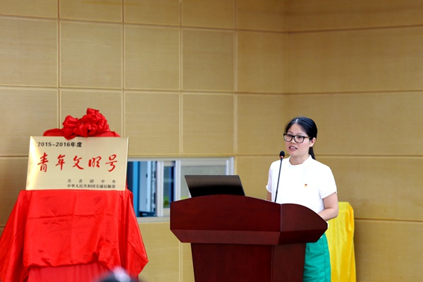 隨后,交通運輸廳團委阮夏恒書記宣讀共青團中央聯(lián)合其他21個部委下文的《關(guān)于命名2015—2016年度全國“青年文明號”的決定》。宣讀完畢后,團區(qū)委青年發(fā)展部部長助理張弛、交通廳團委書記阮夏恒、集團公司黨委副書記張友坐、設(shè)計院公司黨委書記周錚共同為“青年文明號”揭牌。