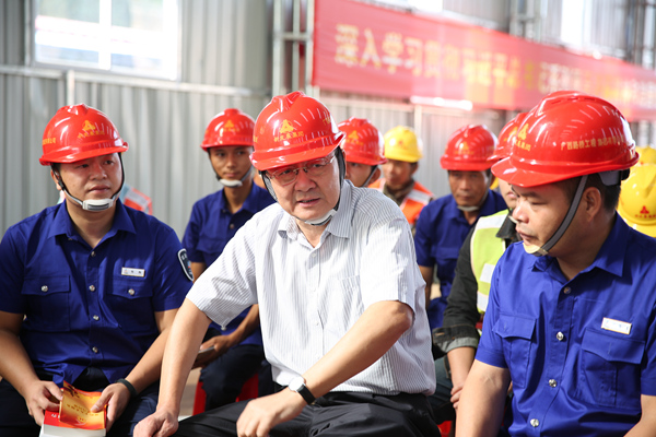 在作業(yè)一線,王躍飛主席結(jié)合企業(yè)實(shí)際情況,與現(xiàn)場(chǎng)員工及作業(yè)工人深入淺出的講解黨的十九大精神,讓黨的十九大精神在基層落地生根。王躍飛指出,黨的十九大對(duì)中華民族乃至每個(gè)老百姓的命運(yùn)十分重要、關(guān)鍵,會(huì)議選舉出了以習(xí)近平總書記為核心的領(lǐng)導(dǎo)集體,確定了習(xí)近平新時(shí)代中國(guó)特色社會(huì)主義思想,確定了新的發(fā)展規(guī)劃。王躍飛表示,當(dāng)前我國(guó)的奮斗目標(biāo)是建設(shè)成為富強(qiáng)、民主、文明、和諧、美麗的社會(huì)主義現(xiàn)代化強(qiáng)國(guó),我國(guó)的社會(huì)主要矛盾也已經(jīng)轉(zhuǎn)化為人民日益增長(zhǎng)的美好生活需要和不平衡不充分的發(fā)展之間的矛盾,我們要對(duì)這些新論斷,新理念有清醒的認(rèn)識(shí)。在宣講過程中,王躍飛用通俗易懂的語言對(duì)黨的十九大主要內(nèi)容進(jìn)行了精彩的講解。