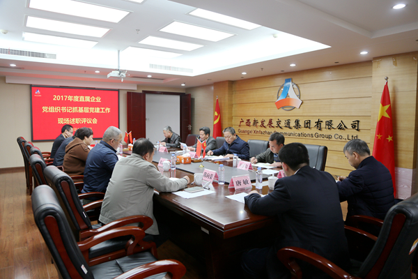 1月12日,集體公司召開2017年度直屬企業(yè)黨組織書記抓基層黨建工作現(xiàn)場述職評議會。集團公司黨委書記朱堅和,黨委副書記張友坐、翁科,紀委書記韋慶和以及自治區(qū)國有企業(yè)監(jiān)事會代表出席會議。