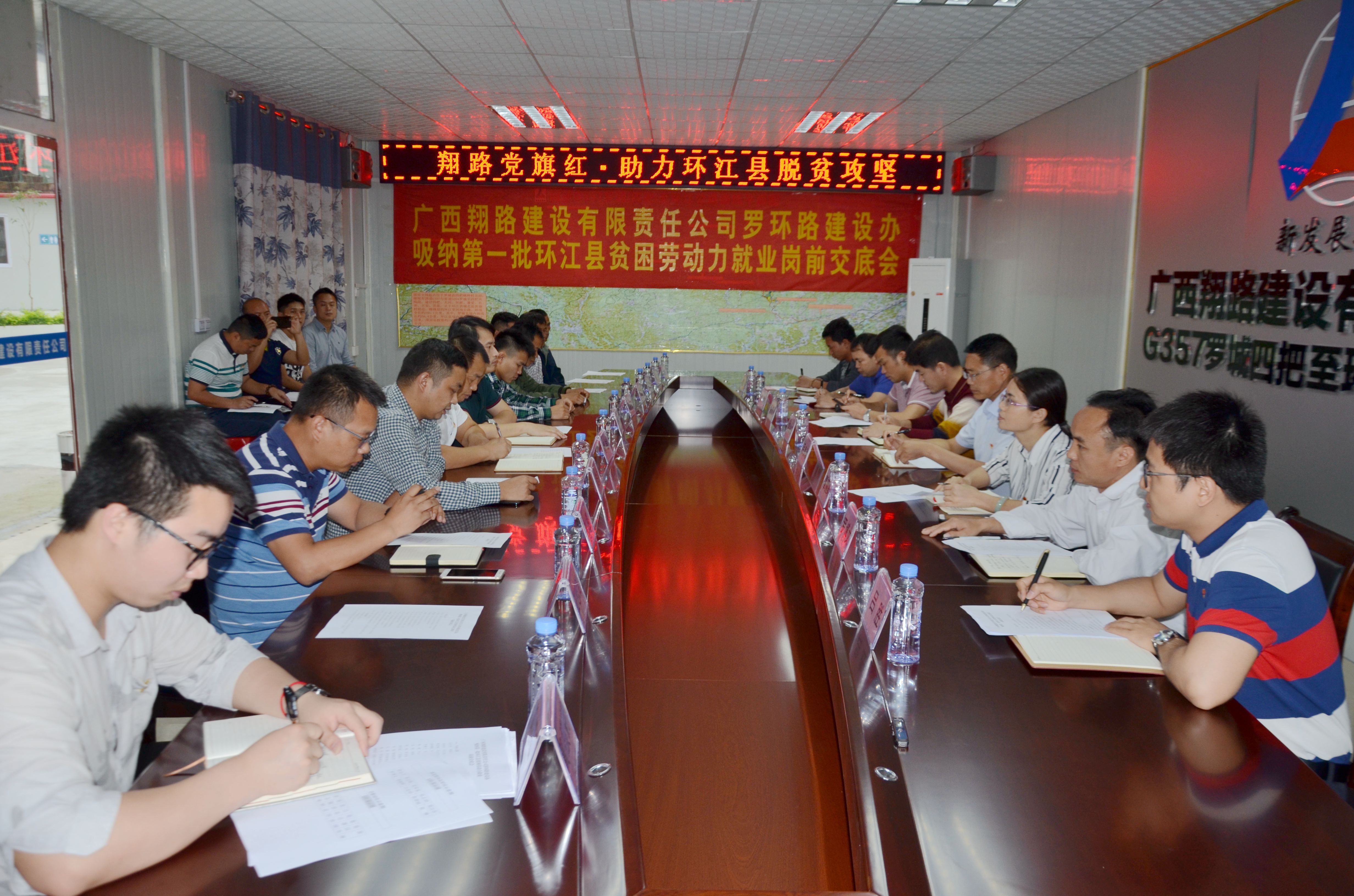 5月9日,廣西新發(fā)展交通集團翔路公司在羅環(huán)路召開吸納環(huán)江縣貧困勞動力就業(yè)崗前交底會,第一批5名貧困勞動力正式上崗,安排到該公司路網(wǎng)項目就業(yè)。經(jīng)過前期大量充分細(xì)致的調(diào)研準(zhǔn)備工作后,廣西新發(fā)展集團路網(wǎng)項目“黨建+就業(yè)扶貧”工作取得了階段性成果,惠及環(huán)江貧困勞動力。