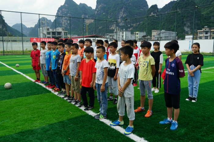據(jù)了解,該小學(xué)的足球訓(xùn)練場(chǎng)地是一塊簡(jiǎn)單硬化后的水泥地,不僅不符合正規(guī)場(chǎng)地尺寸標(biāo)準(zhǔn),堅(jiān)硬粗糙的地面也大大增加了孩子們受傷的風(fēng)險(xiǎn)。了解到這樣的情況后,都巴高速志愿者服務(wù)分隊(duì)策劃了此次聯(lián)誼,并決定為孩子們無(wú)償開(kāi)放距學(xué)校很近的都巴高速二分部足球場(chǎng),為他們提供更好的運(yùn)動(dòng)條件,讓分部駐地里的這片綠茵場(chǎng)成為六也鄉(xiāng)中心小學(xué)足球隊(duì)的訓(xùn)練基地,與孩子們共享足球運(yùn)動(dòng)的快樂(lè)。