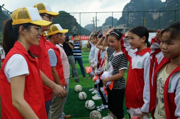六也鄉(xiāng)中心小學(xué)韋校長(zhǎng)對(duì)青年志愿者們的幫助表示衷心的感謝,他表示:志愿者們的愛(ài)心不僅解決了孩子們的運(yùn)動(dòng)場(chǎng)所問(wèn)題,更是在孩子們的心中種下了希望的種子,圓了孩子們的足球夢(mèng)。六年級(jí)的小浩作為球隊(duì)隊(duì)長(zhǎng)為都巴高速志愿者代表送上錦旗,并表示一定不會(huì)辜負(fù)大家的愛(ài)心與期望,勤奮鍛煉、努力向上,做一個(gè)對(duì)社會(huì)有用的人。