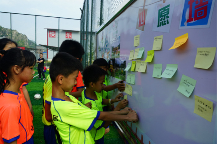 在活動(dòng)現(xiàn)場(chǎng),志愿者們還為孩子們?cè)O(shè)置了“心愿墻”,孩子們?cè)诶蠋煹闹敢聦?xiě)出了埋藏在心里已久的心愿—“我想要一件皇馬隊(duì)球衣”、“我想要一本日記本”……一個(gè)個(gè)質(zhì)樸的心愿都將在志愿者的幫助下得以實(shí)現(xiàn)。