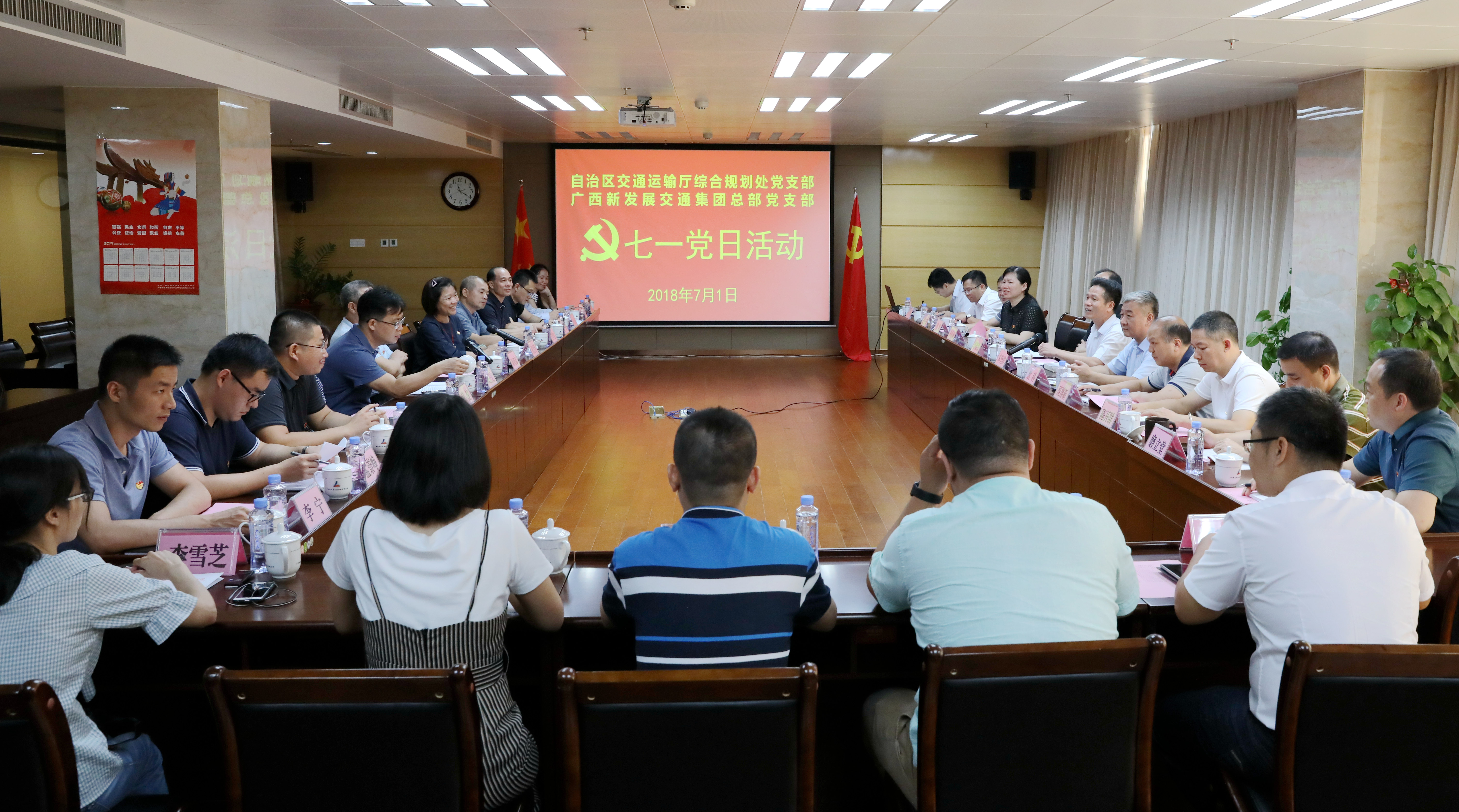 雙方黨員通過交流發(fā)言,共同回顧了中國共產(chǎn)黨成立97年來艱苦卓絕的奮斗歷史和團結(jié)帶領(lǐng)全國各族人民所取得舉世矚目的發(fā)展成就;共同感受到了我們比歷史上任何時期都更接近中華民族偉大復興的目標;共同認識到,廣西交通人作為習近平總書記對廣西發(fā)展提出“三大定位”目標的堅定實踐者和開拓者,作為先行官,必須進一步強化責任感和使命感。活動中,雙方黨組織重點就縣縣通高速公路、路網(wǎng)項目、智慧交通項目等有關(guān)事項進行了深入探討。