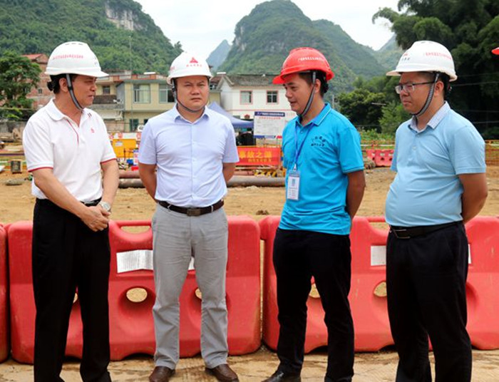 在為期兩天的督查工作中,督察組一行沿著融河高速主線縱向便道深入到施工建設(shè)一線,重點(diǎn)對(duì)武陽(yáng)江大橋、雙合隧道、羅城服務(wù)區(qū)、古毛大橋、小隘特大橋等關(guān)鍵控制性工程的建設(shè)進(jìn)展情況進(jìn)行實(shí)地調(diào)研督查,同時(shí)對(duì)指揮部、總經(jīng)理部及五個(gè)分部進(jìn)行質(zhì)量、安全內(nèi)業(yè)資料檢查。督察期間,唐咸秋與河池市政協(xié)副主席蘇志宏就融河高速沿線征拆工作、高壓桿線遷移等問(wèn)題進(jìn)行了磋商,并與設(shè)計(jì)單位就相關(guān)設(shè)計(jì)問(wèn)題進(jìn)行探討。