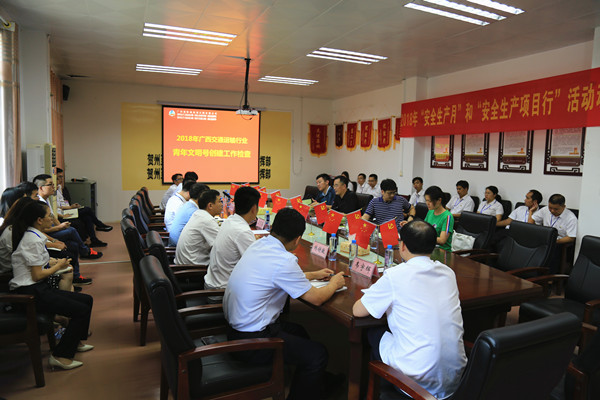 7月10日、19日,廣西交通運(yùn)輸行業(yè)“青年文明號”檢查組分別到賀巴高速鐘昭指揮部、都巴指揮部進(jìn)行 “青年文明號”創(chuàng)建檢查工作。