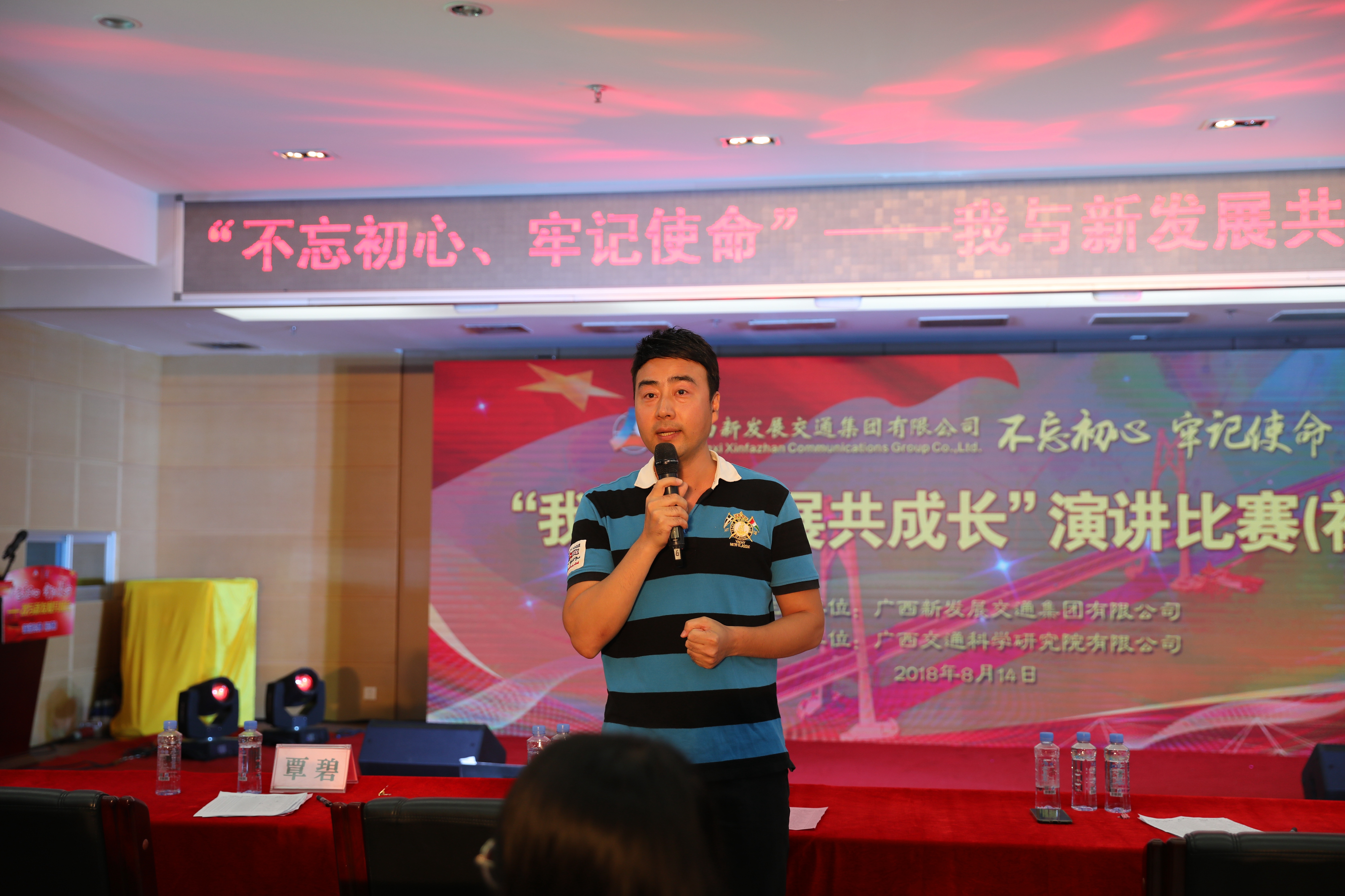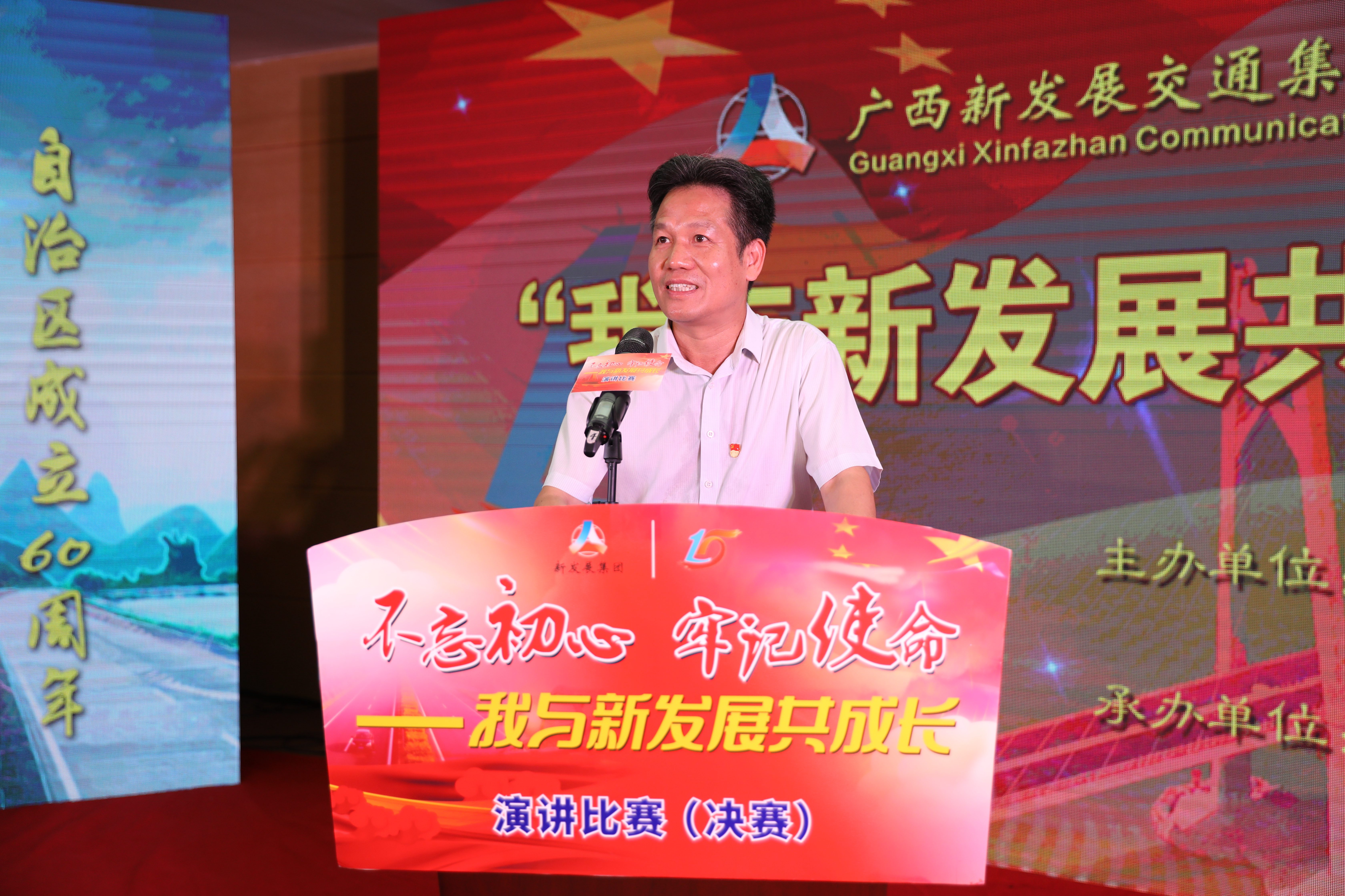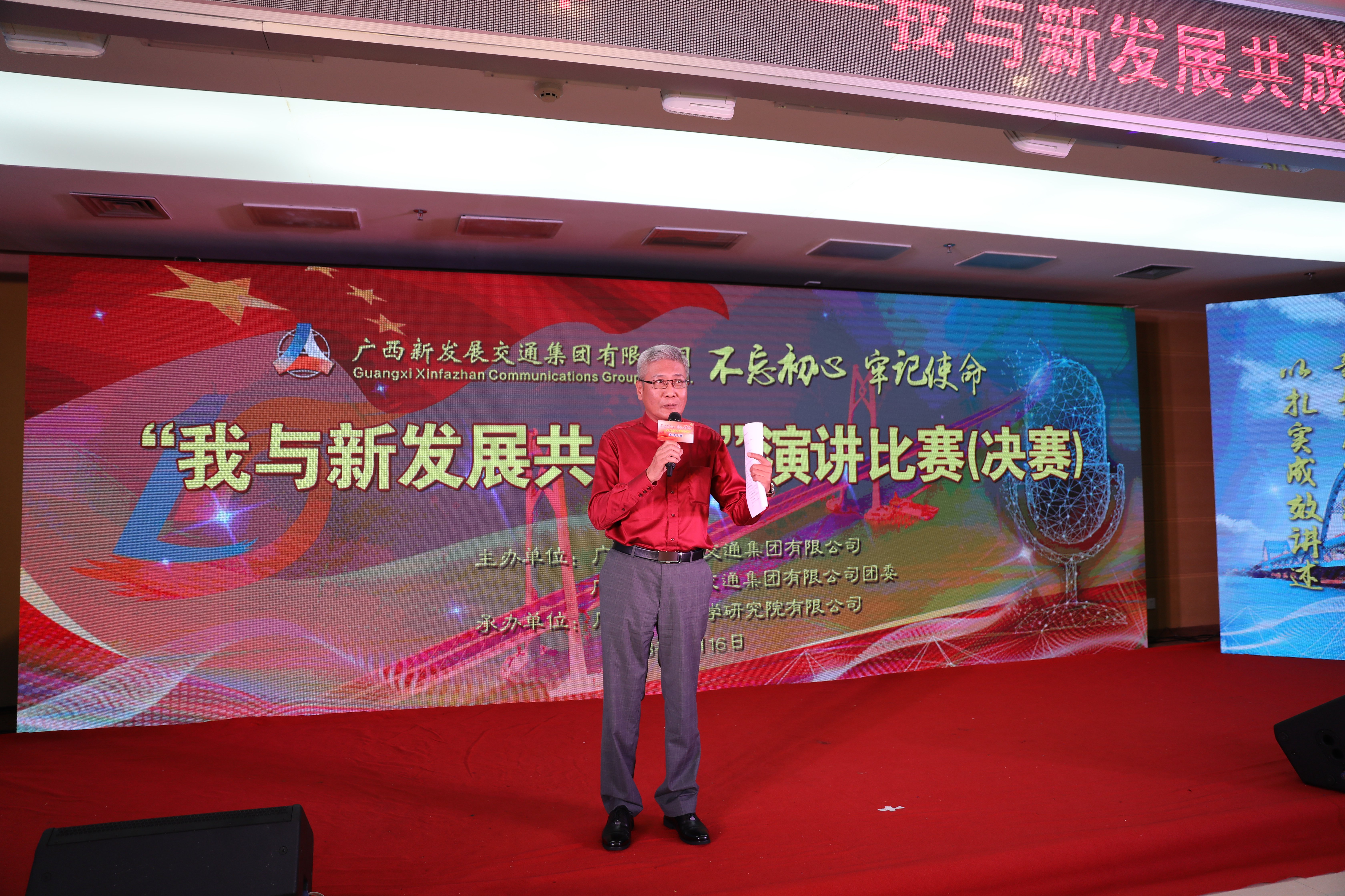 為深入學(xué)習(xí)貫徹落實習(xí)近平新時代中國特色社會主義思想和黨的十九大精神,以扎實的成效迎接改革開放40周年和自治區(qū)成立60周年,近日,廣西新發(fā)展交通集團(tuán)舉辦“不忘初心、牢記使命——我與新發(fā)展共成長”主題演講比賽。8月16日,決賽在南寧成功舉辦。 來自12家直屬企業(yè)的38名選手經(jīng)過所在單位的層層選拔推薦和集團(tuán)公司的初賽復(fù)選,最終有12名選手晉級決賽。集團(tuán)公司黨委書記、董事長朱堅和出席決賽活動,并致開幕辭。