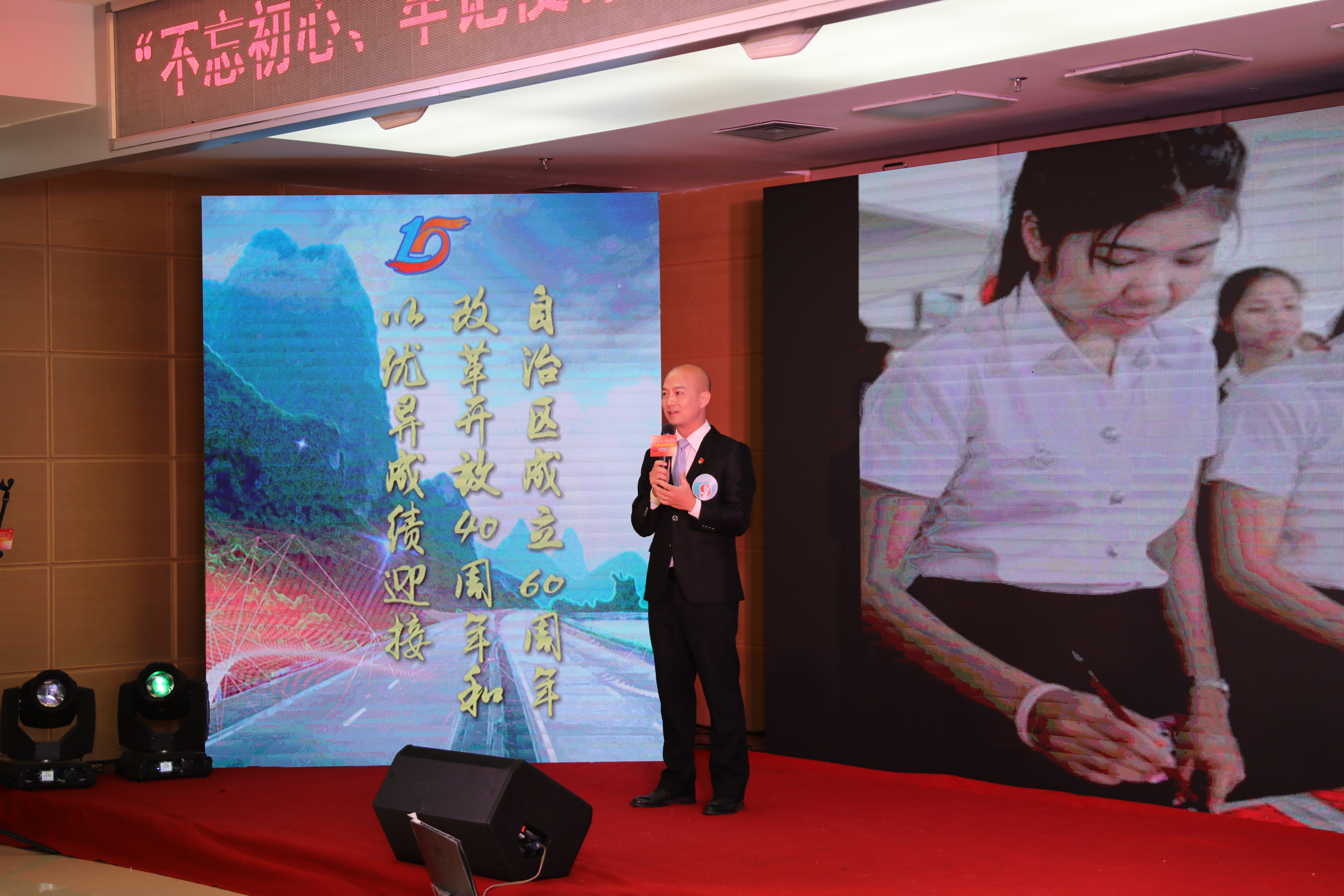 比賽邀請了自治區(qū)國資委宣傳群工處處長、黨委宣傳部部長吳雙平和廣西電視臺李力、高路、王繼修3位老師擔(dān)任主評委并為獲獎選手頒獎。集團(tuán)公司領(lǐng)導(dǎo)唐咸秋、翁科出席活動現(xiàn)場并為獲獎選手頒獎。集團(tuán)公司總部和直屬各企業(yè)員工代表近250人觀看了決賽。
