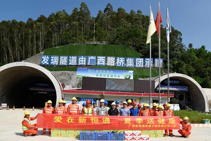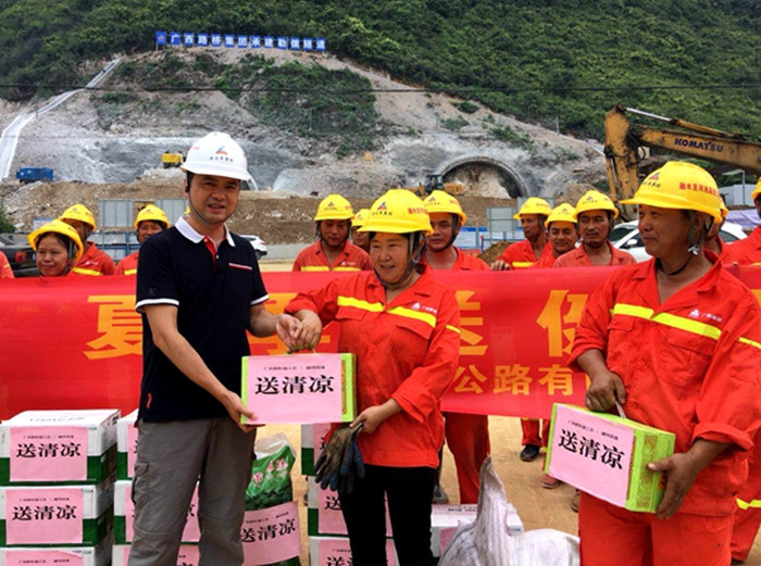8月中旬,新恒通公司到賀巴高速、融河高速開(kāi)展“送清涼”慰問(wèn)活動(dòng),在炎炎夏日給一線(xiàn)的職工送上絲絲涼意與關(guān)懷。