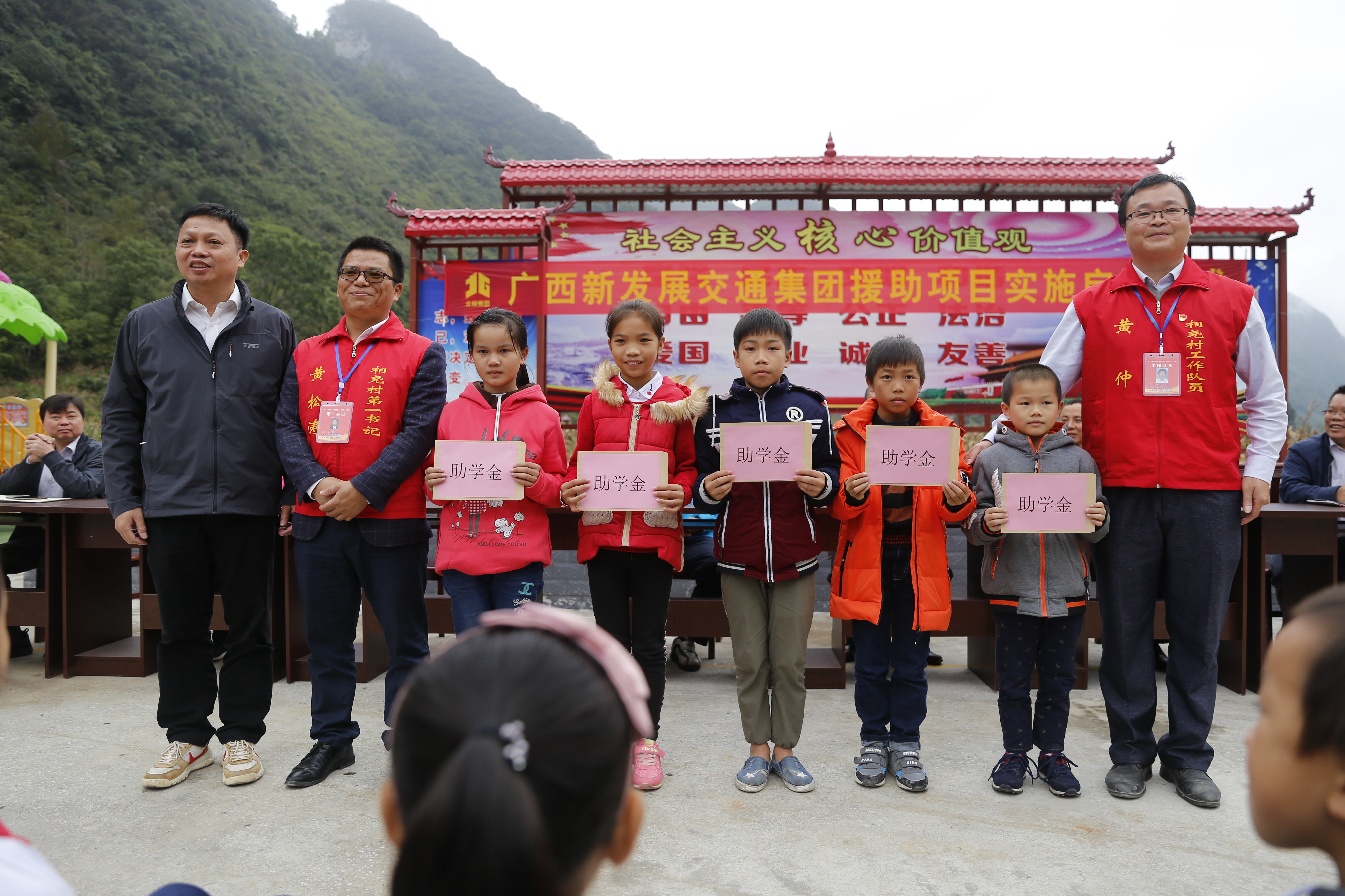 新發(fā)展集團(tuán)、廣路集團(tuán)、建材院共向中停村捐助了10萬元,用于基礎(chǔ)設(shè)施建設(shè),購置教學(xué)、辦公設(shè)備,給貧困戶學(xué)生發(fā)放了助學(xué)金。