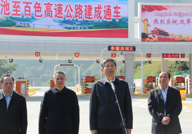 11月28日,河池至百色高速公路正式建成通車,自治區(qū)副主席費志榮到場祝賀并進行致辭。