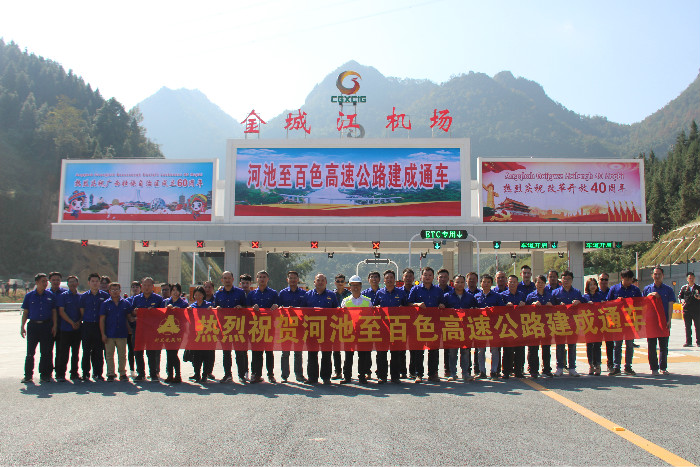 路騰龍飛騁八桂,齊驅(qū)并舞慶誕辰。11月28日,新發(fā)展交通集團參加勘察設(shè)計、施工的吳圩機場至大塘高速公路、河池至百色高速公路正式通車,企業(yè)豐碑再添功績。