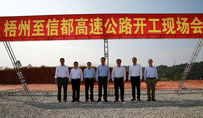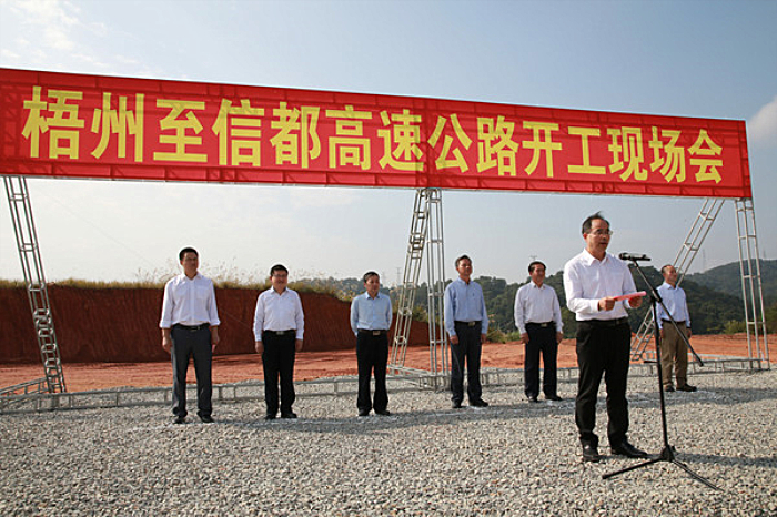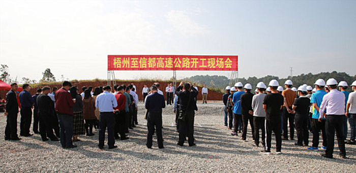 自治區(qū)交通運(yùn)輸廳巡視員李小林宣布:梧州至信都高速公路項(xiàng)目正式開(kāi)工建設(shè)。