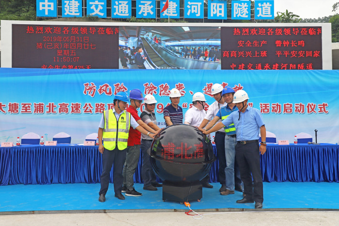 5月31日,大浦公司于5月31日在項(xiàng)目二分部河陽(yáng)隧道舉行項(xiàng)目2019年安全生產(chǎn)月活動(dòng)啟動(dòng)儀式,大浦公司、各監(jiān)理單位、各 施工單位代表及相關(guān)安全管理人員100多人參加。