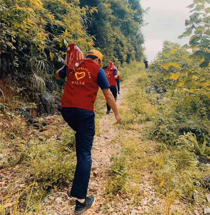 圖5:志愿者扛著慰問(wèn)品步行到貧困學(xué)子家里